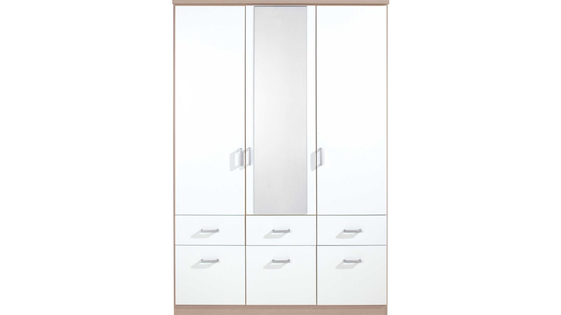 Kleiderschrank Rauch aus Holz in Weiß rauch BLUE Kleiderschrank Bremen - Schlafzimmerschrank Sonoma Eiche & Alpinweiß - Breite ca. 136 cm, drei Türen, sechs Schubladen