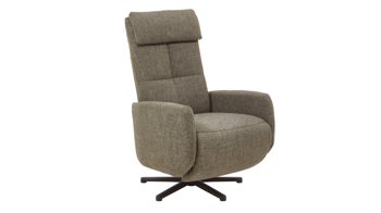 Dieser Relax-Drehsessel aus dem Polsterprogramm New Jersey zeichnet sich durch seine moderne und gemütliche Ausstrahlung, eine exzellente Material- und Verarbeitungsqualität sowie extra hohen Sitzkomfort aus. Der trendige und spezielle olivfarbene Stoffbezug sorgt für ein edles Design. Ein mattschwarzer Metall-Sternfuß rundet die Optik stimmig ab und trägt überdies zur Stabilität des attraktiven TV-Sessels bei. Einen gelungenen Akzent setzt die gesteppte Rückenlehne. Die Sitzfläche ist glatt bezogen.