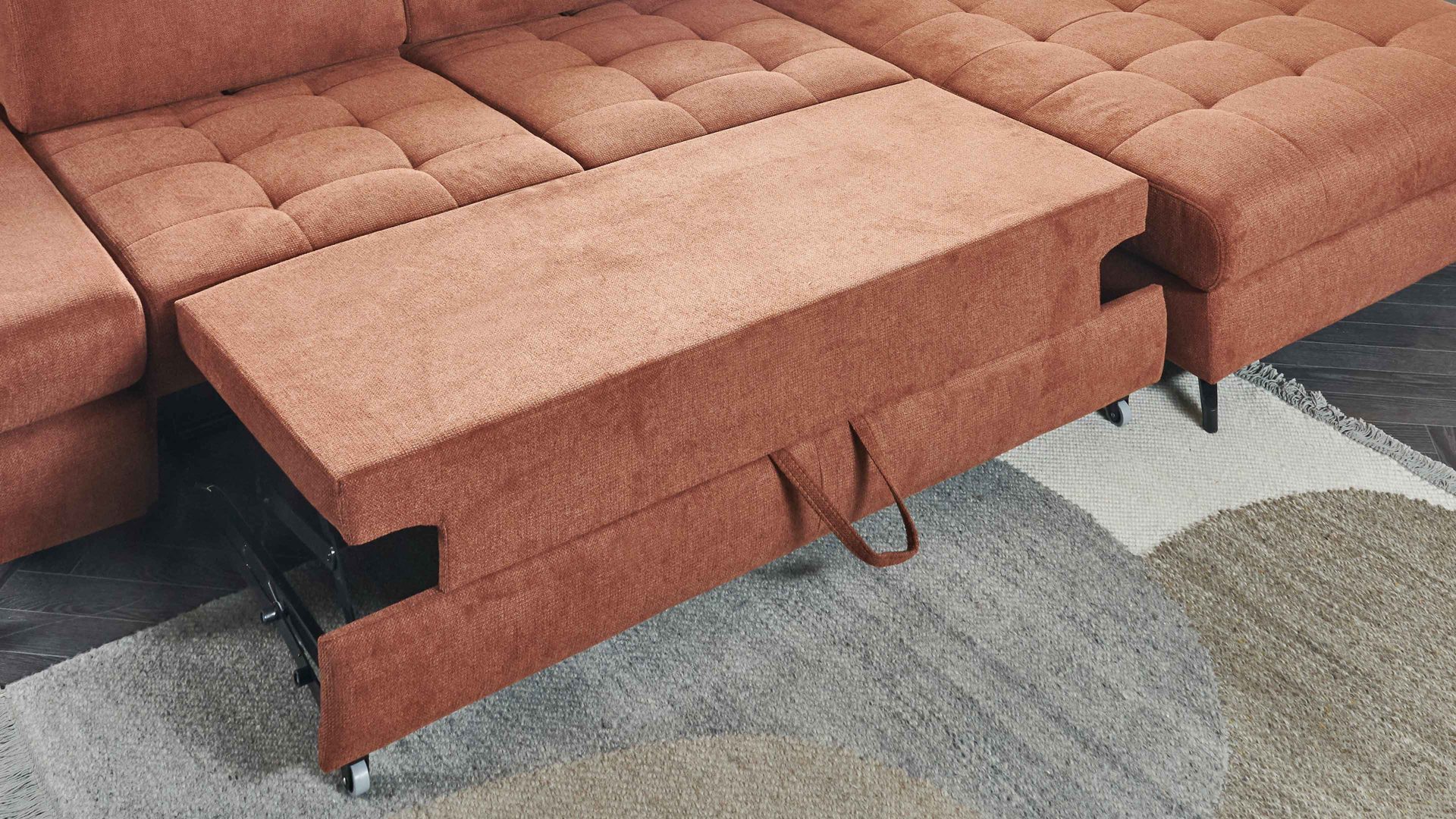 Mit der Möglichkeit zum Ausziehen wird die jeweilige Couch noch flexibler einsetzbar und dadurch gemütlicher, entspannender sowie erholsamer. Beispielsweise können Sie das Sofa hin und wieder ausfahren, um buchstäblich ausgedehnt zu relaxen - oder um Ihren Gästen einen Schlafplatz zur Verfügung zu stellen. Die Liegefläche wird immer im Originalstoff des Sofas bezogen.