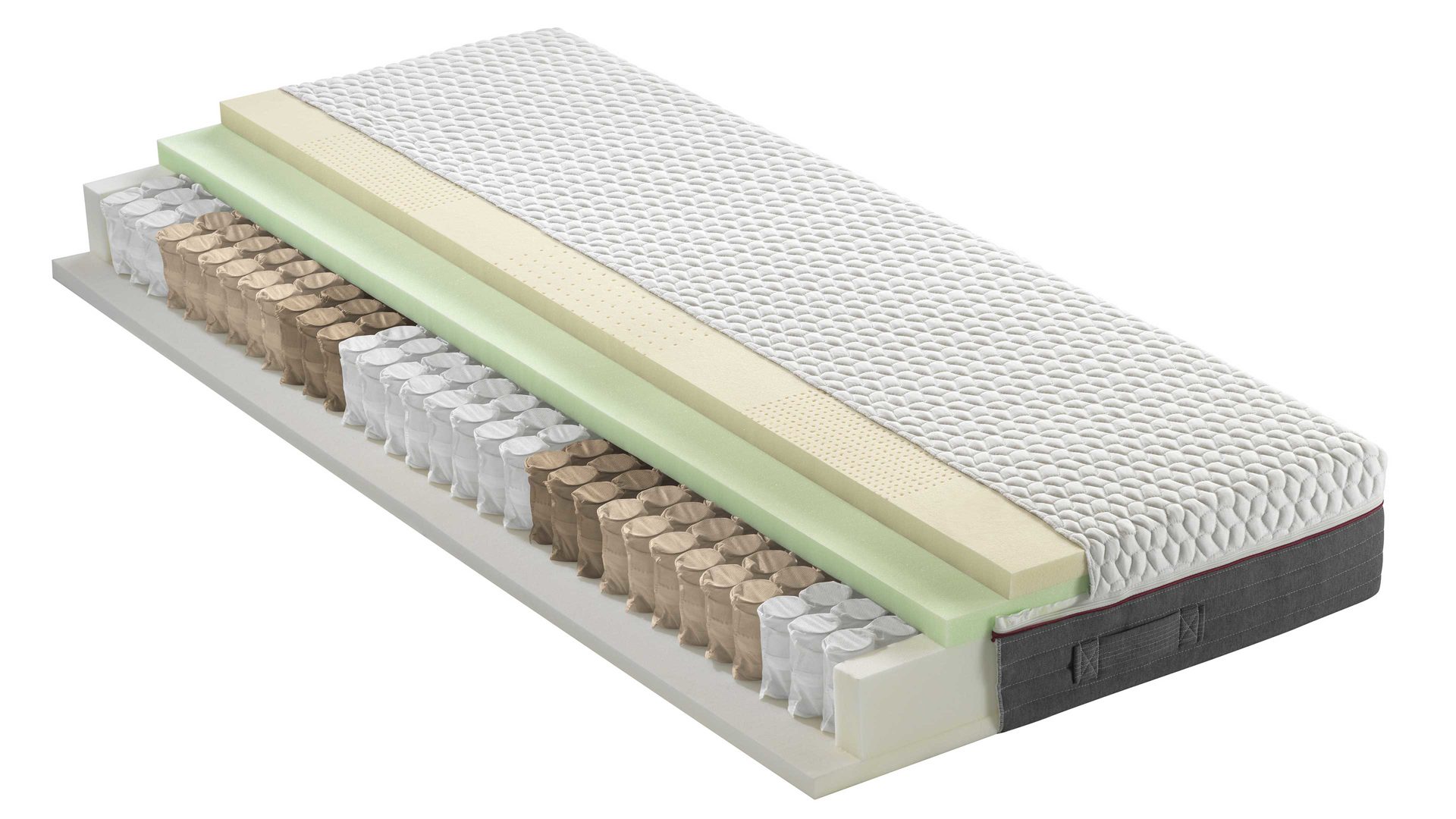 Ein Highlight der Taschenfederkernmatratze bildet die ca. 4 cm dicke Komfort-Zwischenlage aus aerDURA®-Softschaum. Diese optimiert die Druckverteilung und stützt den Körper dadurch in jeder Liegeposition sanft ab. Außerdem verstärkt die Zwischenlage die Klimaeigenschaften der Softlatex-Komfortschicht. Apropos: Die ebenfalls ca. 4 cm dicke Softlatex-Komfortauflage auf der Oberseite ist besonders anpassungsfähig und sorgt so für ein entspanntes, wohliges Liegegefühl. Zu erwähnen gilt es weiterhin, dass Softlatex Wärme und Feuchtigkeit ausgezeichnet reguliert, dazu langlebig und belastbar ist und mit 50 % natürlichen, nachwachsenden Rohstoffen auch noch die Umwelt und Ressourcen schont.