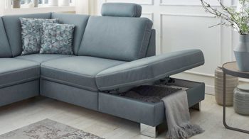 Beispielsweise sind die attraktiven Bezüge mit und ohne Kontrastnaht umsetzbar. Dazu stehen Ihnen sechs Fußvarianten zur Wahl. Des Weiteren sind zwei bequeme Sitzqualitäten preisgleich erhältlich: Federkern (fest) oder Kaltschaum (soft). Sie wählen überdies zwischen zwei preisgleichen Sitzhöhen und können optional mehrere manuelle oder motorische Funktionen ergänzen.