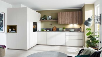 Bei der WERT KÜCHE® Franziska handelt es sich um ein individuell planbares Küchenprogramm Made in Germany. Optional ist sie mit einem Geschirrspüler und einer Armatur erweiterbar.