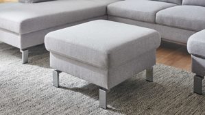 hellgrauer Flachgewebebezug und matt chromfarbene Metallfüße