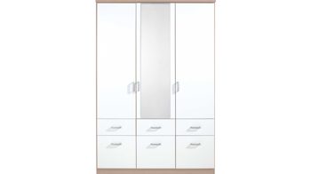 Kleiderschrank Rauch aus Holz in Weiß rauch BLUE Kleiderschrank Bremen - Schlafzimmerschrank Sonoma Eiche & Alpinweiß - Breite ca. 136 cm, drei Türen, sechs Schubladen
