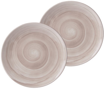 Das Set setzt sich aus zwei identisch gestalteten Desserttellern zusammen, deren Höhe jeweils ca. 2 cm beträgt, während der Durchmesser bei ca. 21 cm liegt.